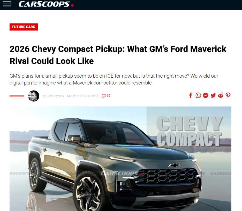 그런데 말입니다. 픽업트럭하면 포드와 쉐보레가 미국 시장을 대표하는데.. 쉐보레는 설마... 소형 픽업트럭을 출시하지 않을까요?