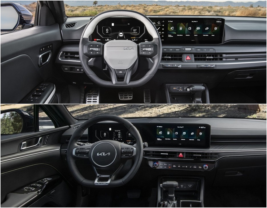 K5는 허리 부분에 고급스러운 패턴을 넣었습니다. 시트의 크기를 포함해서 안락함에 있어서는 K5가 당연히 한수 위로 예상됩니다.