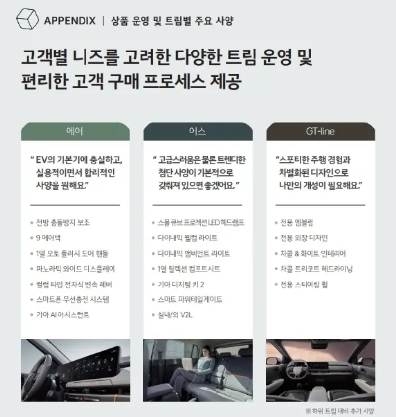 먼저 어떤 트림을 선택해야 할지 고민되죠? 친절하게 선택 포인트를 알 수 있습니다.