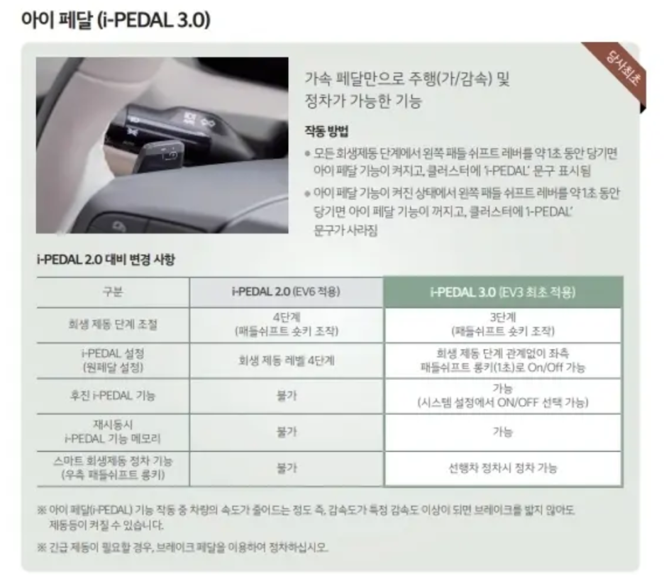 전기차에 에너지를 충전하는 중요한 기능이 아이 페달이 3.0 으로 업그레이가 되었습니다.