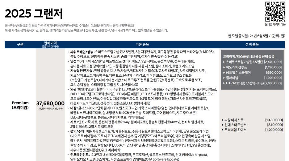 비교해 보기 전까지 저도 몰랐는데요. 통풍 시트 기능 국내 소비자가 선호하는 기능이라서 기본 트림을 구입하실 분들이라면 꼭 참고하세요!