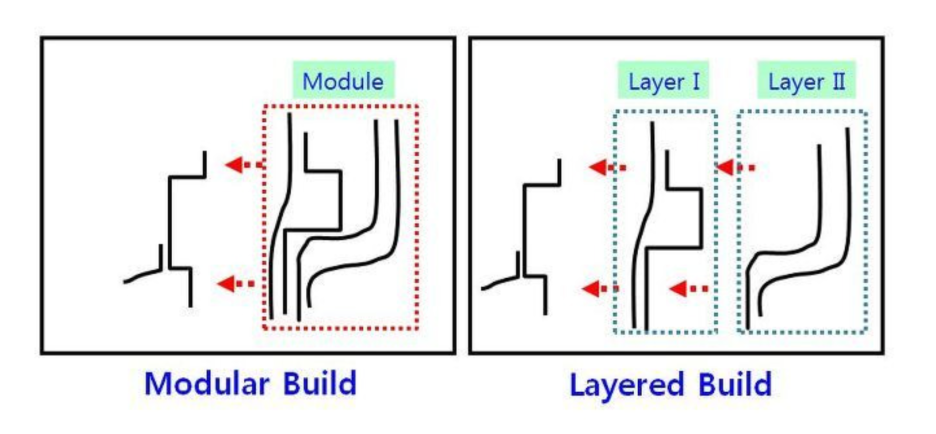철제 패널의 층을 차곡차곡 쌓는 방식이 레이어드 빌드라고 합니다.