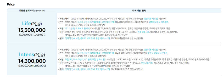 기존 트위지 국내 판매 가격이 1330만원에서1430만 이었죠? 여기에 전기차만의 국고 보조금과 지자체 보조금을 포함하면, 최대 600만원에 구입이 가능했습니다.