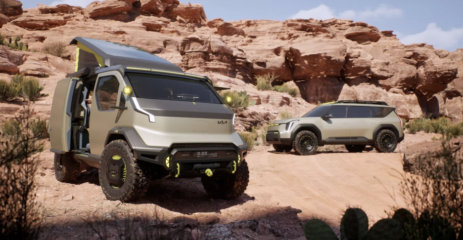 기존 차량인 스포티지, 쏘렌토, 텔루라이드도 튜닝카를 공개했지만, 이번 기아의 주인공은 EV9 Advntr 과 PV5 Wkndr입니다.