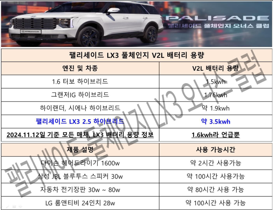 이제 디자인은 충분히 유추할 수준까지 되었는데.. 신형 팰리세이드는 전기차도 아닌 하이브리드 차량에 전기차처럼 차량에서 가전 기기를 자유롭게 사용할 수 있는 V2L 기술이 제공된다고 알려드렸습니다.