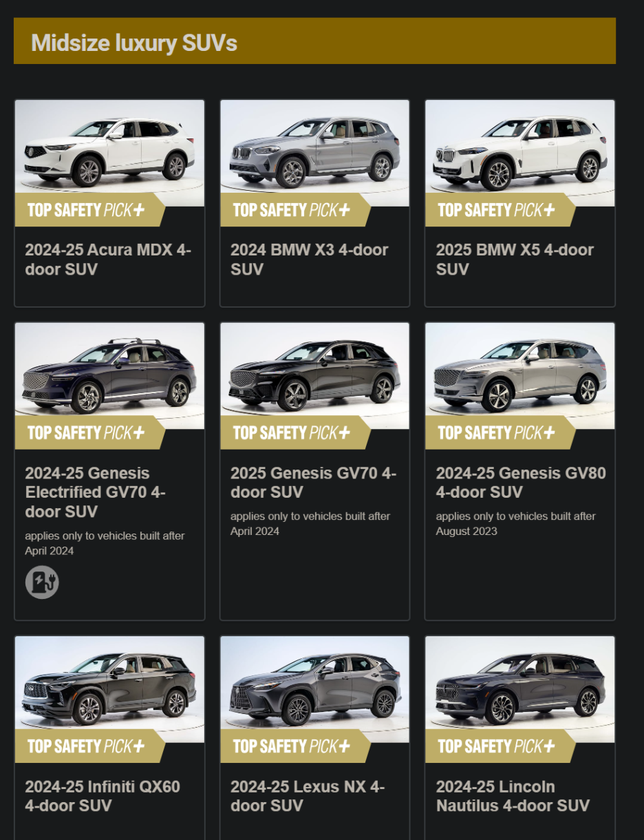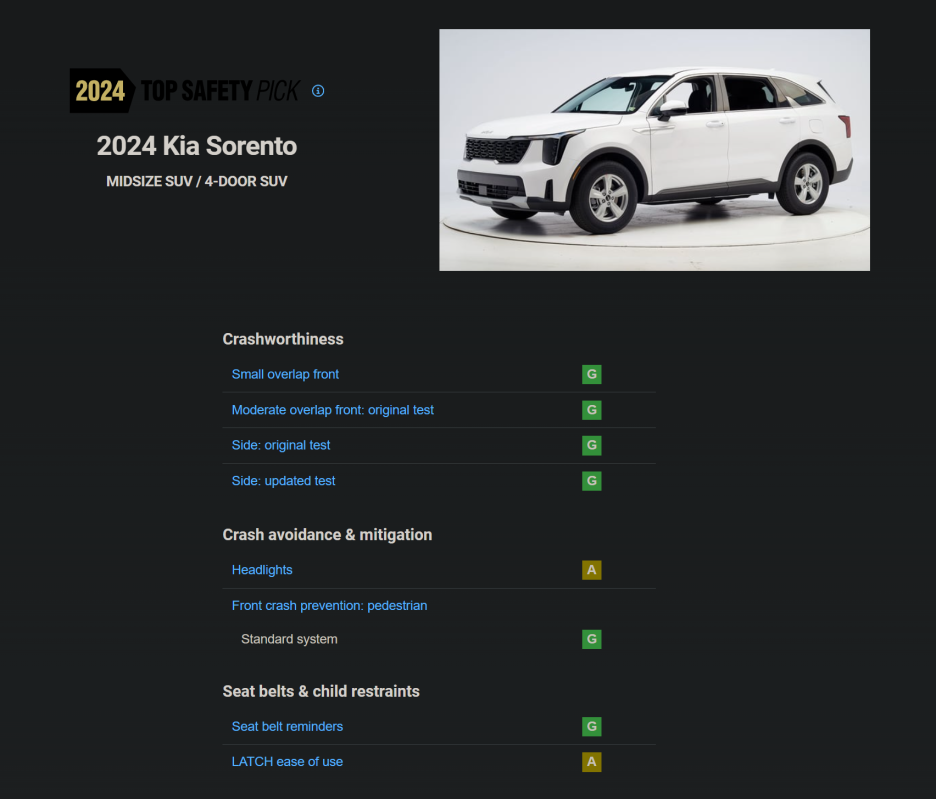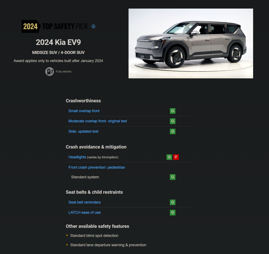 TOP SAFETY PICK 등급에 싼타페, 기아 EV9, 쏘렌토가 보이는데 어떤 이유일까요?