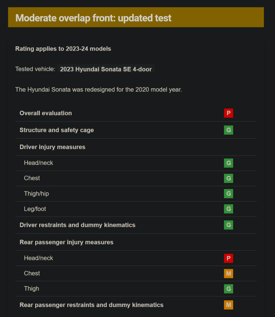 내용을 보면 업데이트된 테스트에서 P 등급을 받았습니다. 이것만 아니라면 TOP SAFETY PICK+도 가능했다는 것인데.. 아쉽네요!