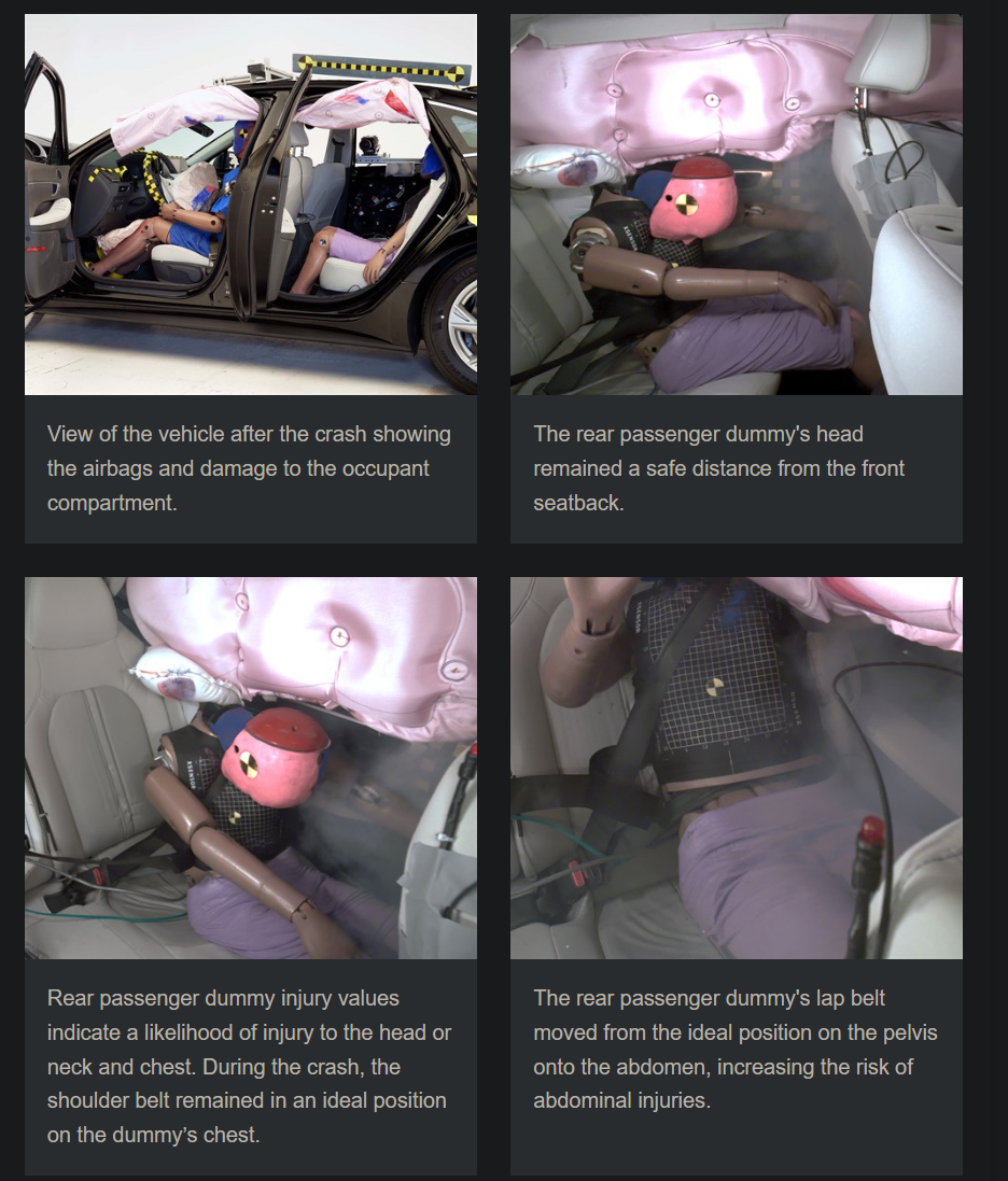 세부적인 내용을 보면 2열 승객의 머리와 목을 잘 보호하지 못하는 것으로 평가받았습니다.