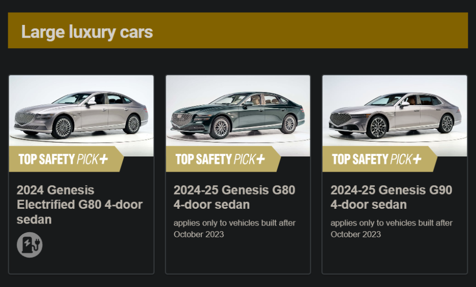 G80 전기차, #G80 세단, #G90 세단이 TOP SAFETY PICK+ 차지했습니다. 대형 고급 세단 시장에서 제네시스가 잘 하고 있군요!