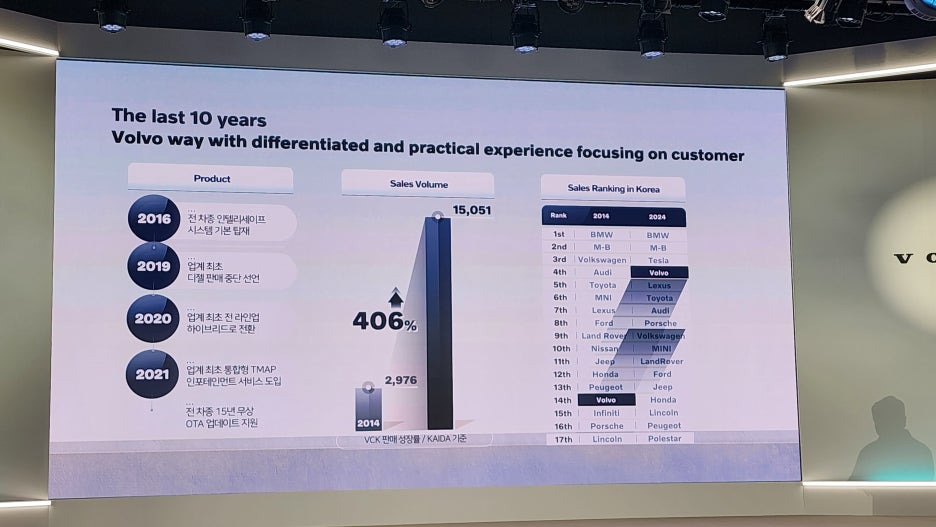 한국 시장에서 볼보가 급성장을 했으며.. 본사에서도 한국 시장을 중요하게 여기기 때문에 가능했습니다.