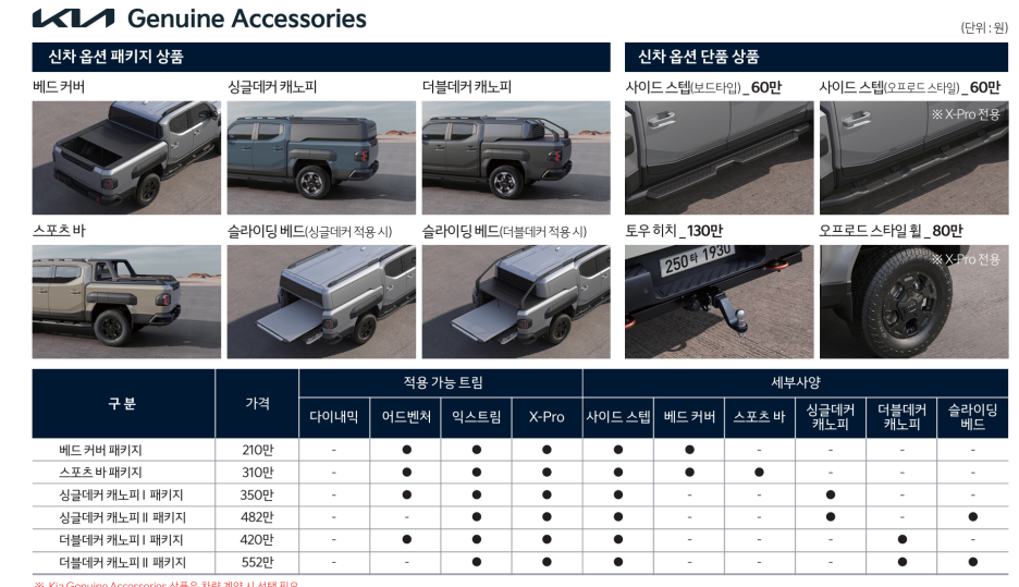 베드 사이드 레일&클릿, 트레일러 브레이크 컨트롤러, 트레일러 페이지, 크래쉬패드 스토리지가 추가됩니다.