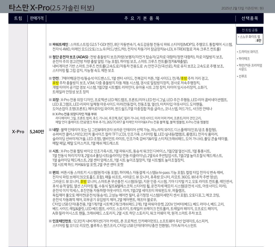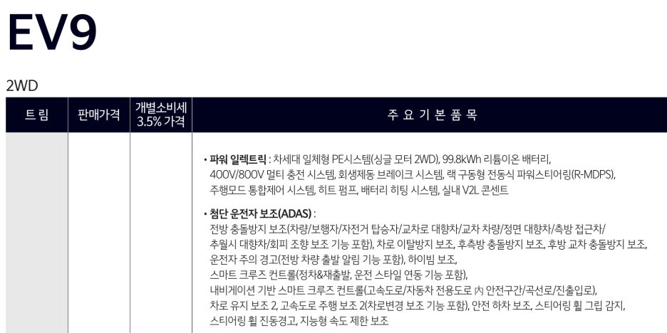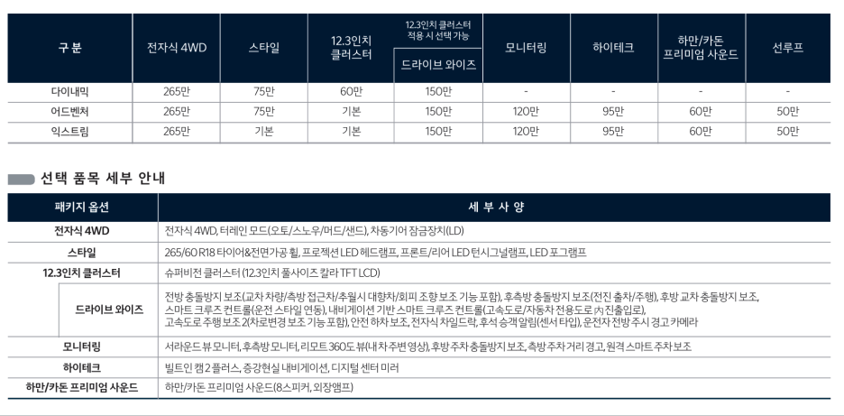 정리하죠! 통풍시트와 2열 슬라이딩&리클라이닝 기능이 필요하다면 기본 트림이 아닌 어드벤처를 선택하세요!