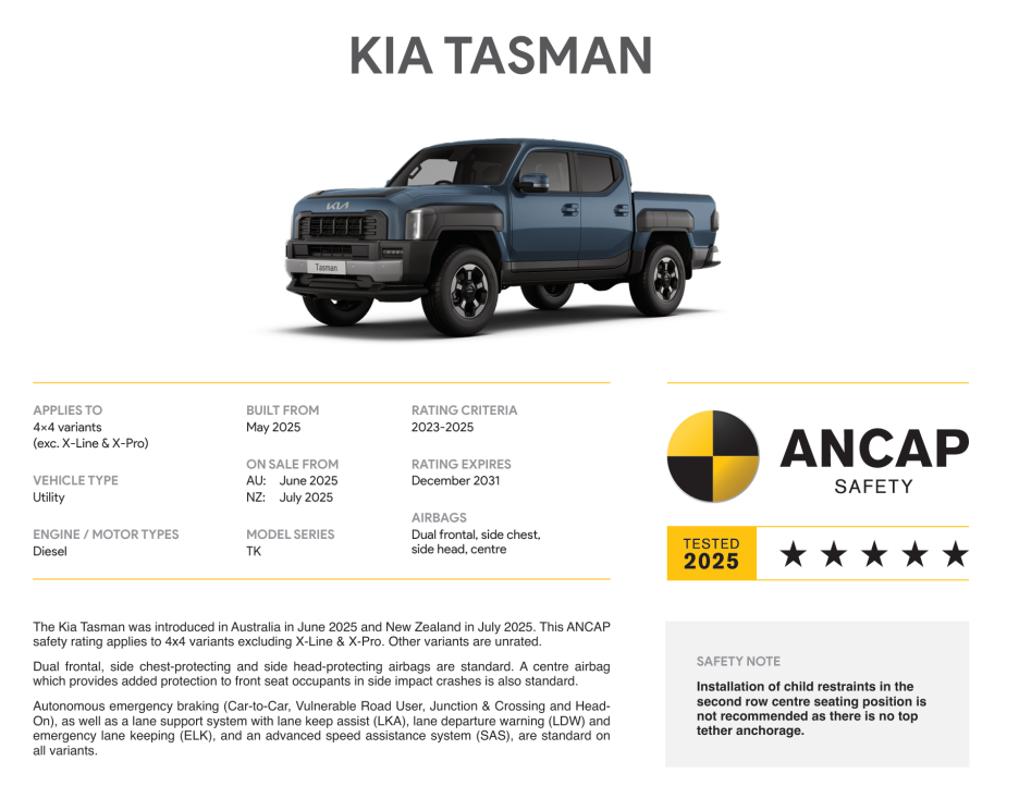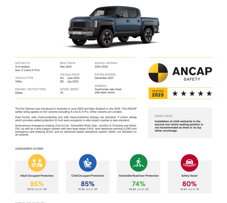 결론적으로 ANCAP에서 시행한 충돌테스트에서 타스만은 별 5개를 획득했습니다.