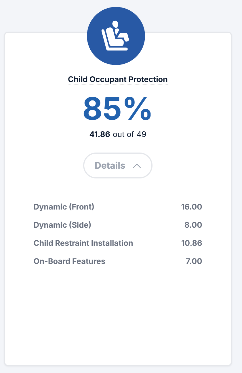 어린이 안전성에 대한 결과는 아이러니하게도 성인 안전성과 동일한 85%를 받았습니다.