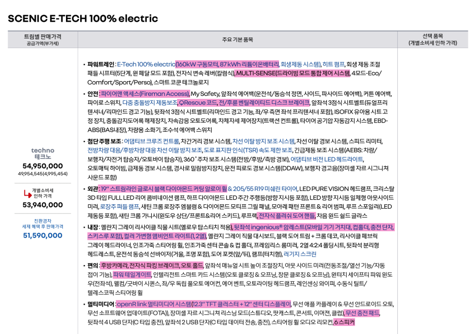 솔라베이 루프 기능이 꼭 필요한 분들에게는 아이코닉이 정답이겠지만, 4천만원대 테크노 트림의 기본 제공 내역도 상당히 괜찮기 때문에 좀 더 저렴한 가격에 유럽 전기차 세닉을 경험해 보시는 것을 추천하고 싶네요!