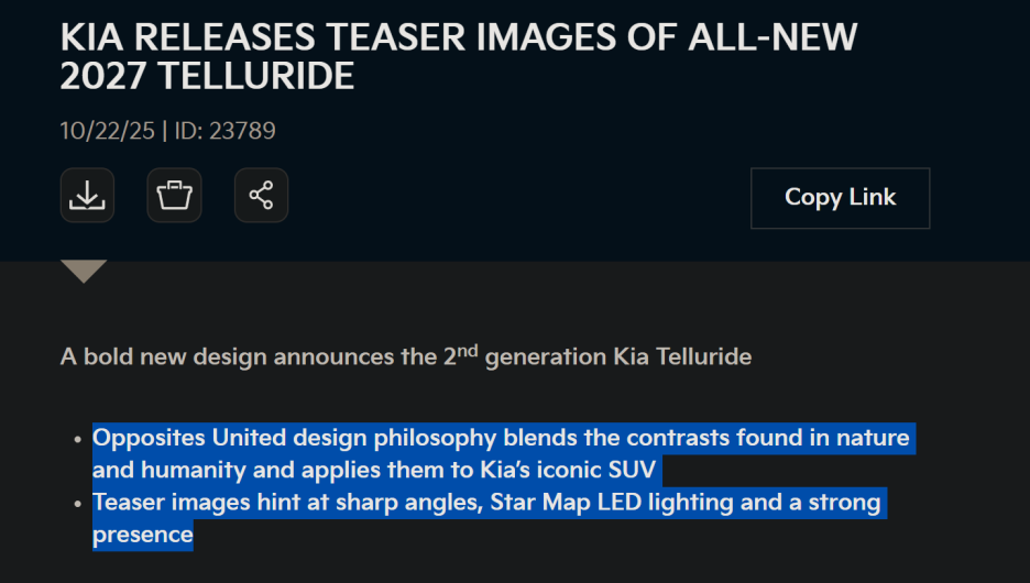 그래서 2세대 텔루라이드는 1세대 콘셉트에서 호평을 받은 디자인 요소를 대거 반영하고 출시가 될 것 같습니다!