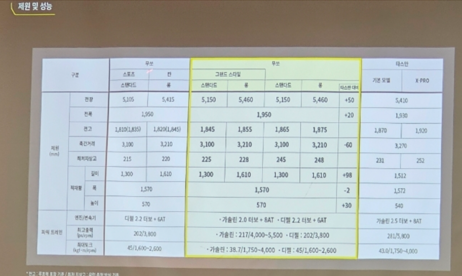 이렇게 된다면 무쏘는 타스만 대비 디젤 엔진을 선택할 수 있다는 점에서 다양한 선택지를 제공한다고 할 수 있습니다.