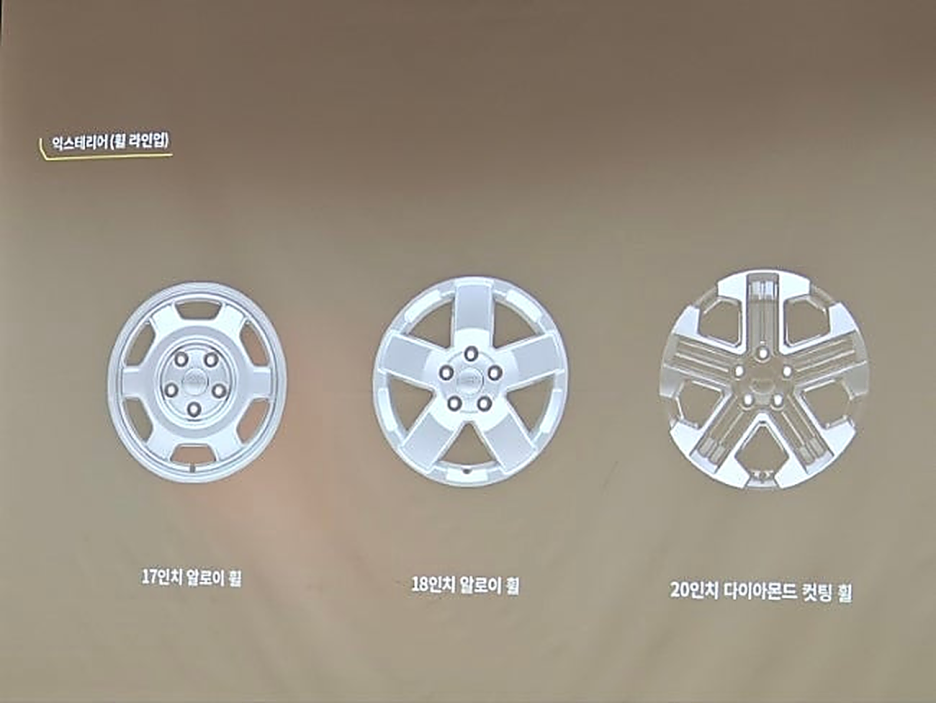 이번에 휠은 총 3가지 디자인으로 출시가 되며, 지금 보신 20인치 휠, 18인치 알로이 휠, 17인치 알로이 휠로 출시가 됩니다.