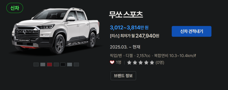 그렇다면 무쏘 스포츠와 칸의 고화질 이미지로 만나보시죠!