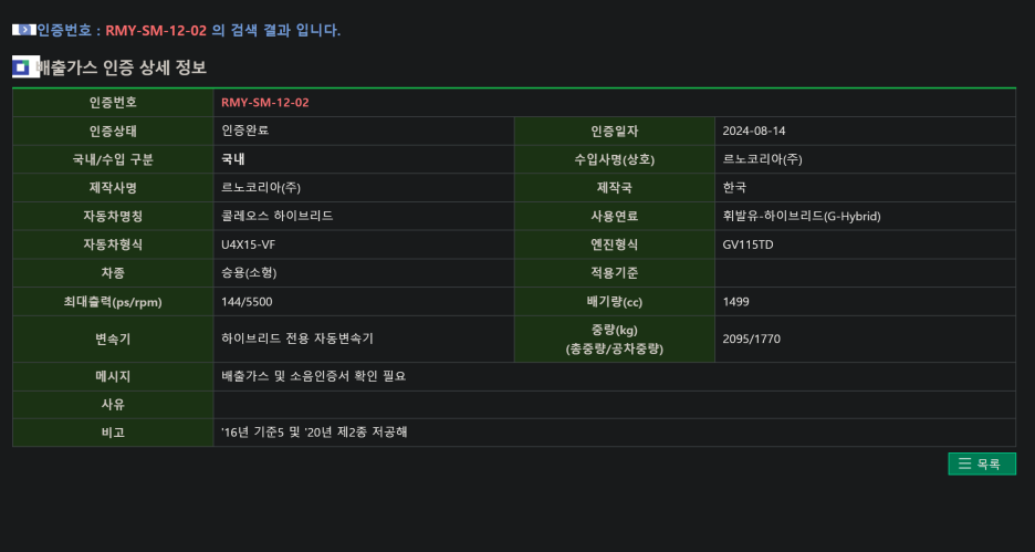 그랑 콜레오스 보다 강력하다! 오로라2 환경부 인증 완료! 하이브리드 예상 스펙
