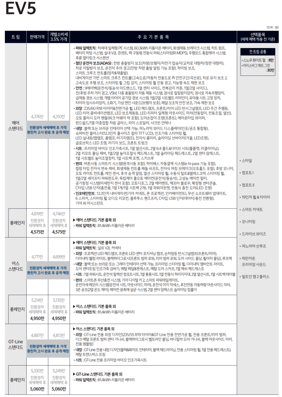 테슬라에 이어서 기아도 가격 확 낮췄다! EV5 시작가 500만원 인하, 평균 280만원 인하 EV6 300만원 인하