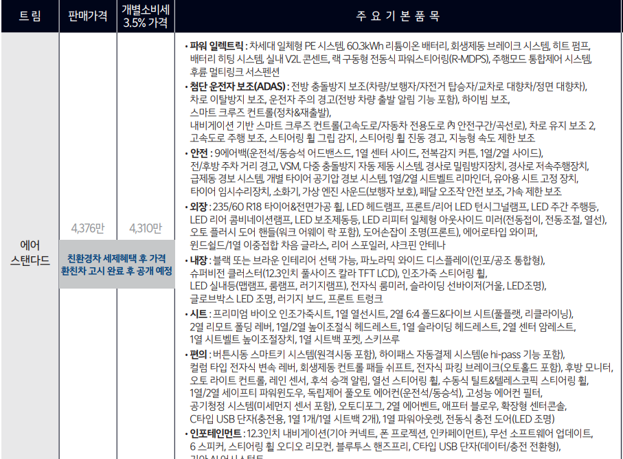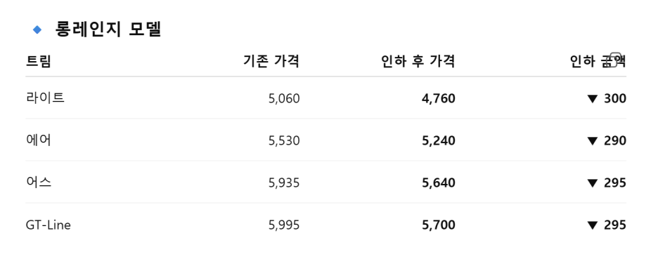 저는 이번 소식이 정말 반갑게 느껴집니다. 가격이 인하되어서 좋은 것도 있지만, 국내 제조사의 차량 가격은 상품성이 변경될때마다 300~500만원씩 공식처럼 올라갔었죠?