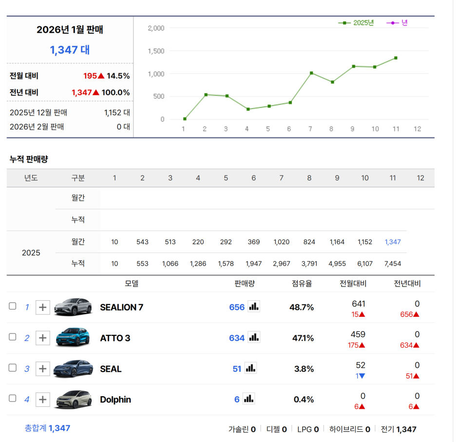 올해 1월만 1347대 넘게 판매를 했다고 하죠? 이 수치는 국내 제조사 1위 현대차를 뛰어넘는 판매량입니다.