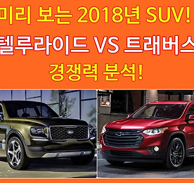 풀사이즈 썸네일형 리스트형 미리 보는 대형 SUV! 텔루라이드 VS 트래버스! 경쟁력 분석! 미리 보는 2018년 대형 SUV시장! 텔루라이드 VS 트래버스! 경쟁력 분석! 사진, 브랜드사 홈페이지 발취 | 글, 연못구름 얼마 전 뉴스에서 존재감 마저 잃어버리고 무너져가는 한국 GM이 중형 SUV인 에퀴녹스와 트래버스를 국내 도입을 결정했다는 반가운 소식과 함께 네티즌의 반응이 뜨거웠습니다. "트래버스가 갑" "트래버스 삽니다" "무조건 삽니다"라는 강한 선호도를 나타내는 반응을 볼 수 있었습니다. ▲ 쉐보레 트래버스 이렇게 강한 선호도를 보이는 이유는 국내에서 선택할 수 있는 대형 SUV는 모바히 VS G4 렉스턴 VS 맥스크루즈가 사실상 전부인데, 풀 사이즈 대형 SUV와 비교해 본다면 제한적인 사이즈를 가지고 있기 때문에 구매자의 니즈를 채워주지 못한다고 할 수 있습니.. 더보기 이전 1 다음